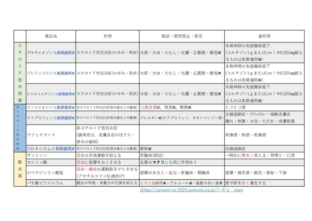 印刷はこちらからどうぞ→一般用医薬品(ステロイド・非ステロイド・駆虫薬)