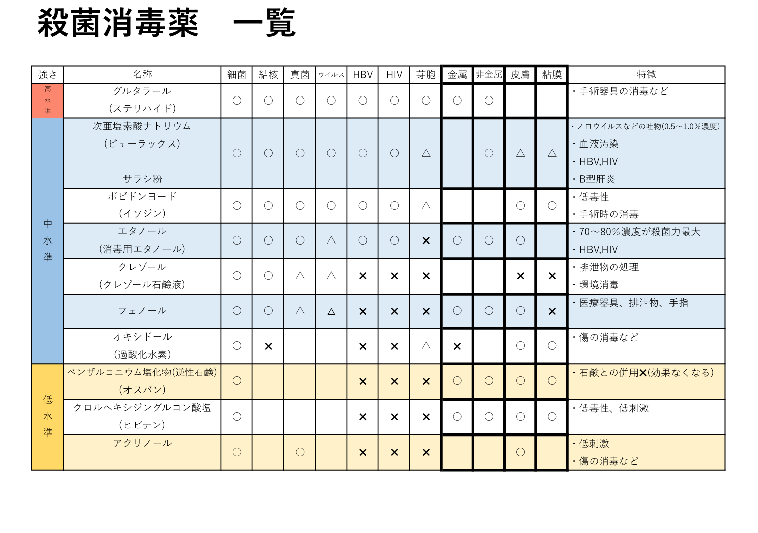 消毒薬以外の方法もあるので、そちらは【滅菌】で説明します。