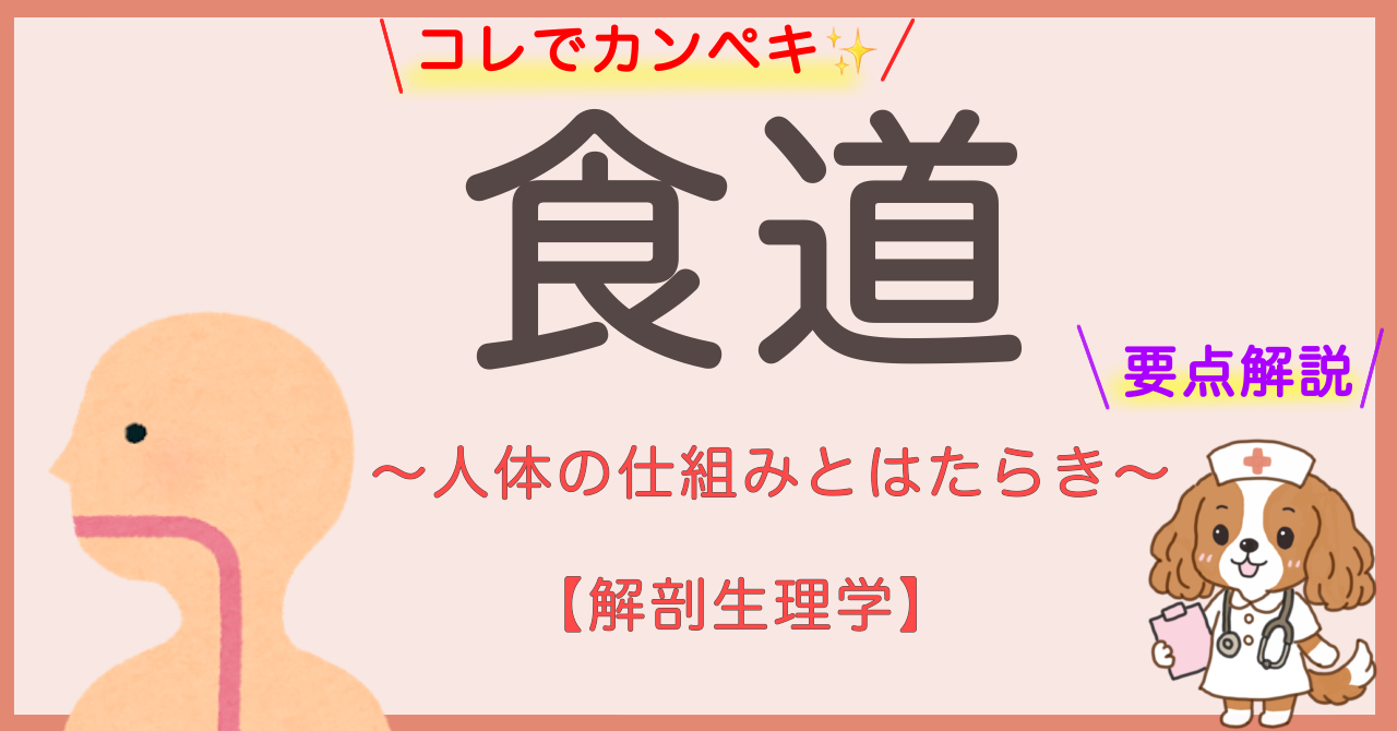 食道は単なる「食べ物の通り道」ではなく、構造と機能を理解することで国家試験にも臨床にも直結する分野です。特に高齢者に多い「誤嚥」とも深く関係する部位なので、構造と働きをよく理解しておきましょう。